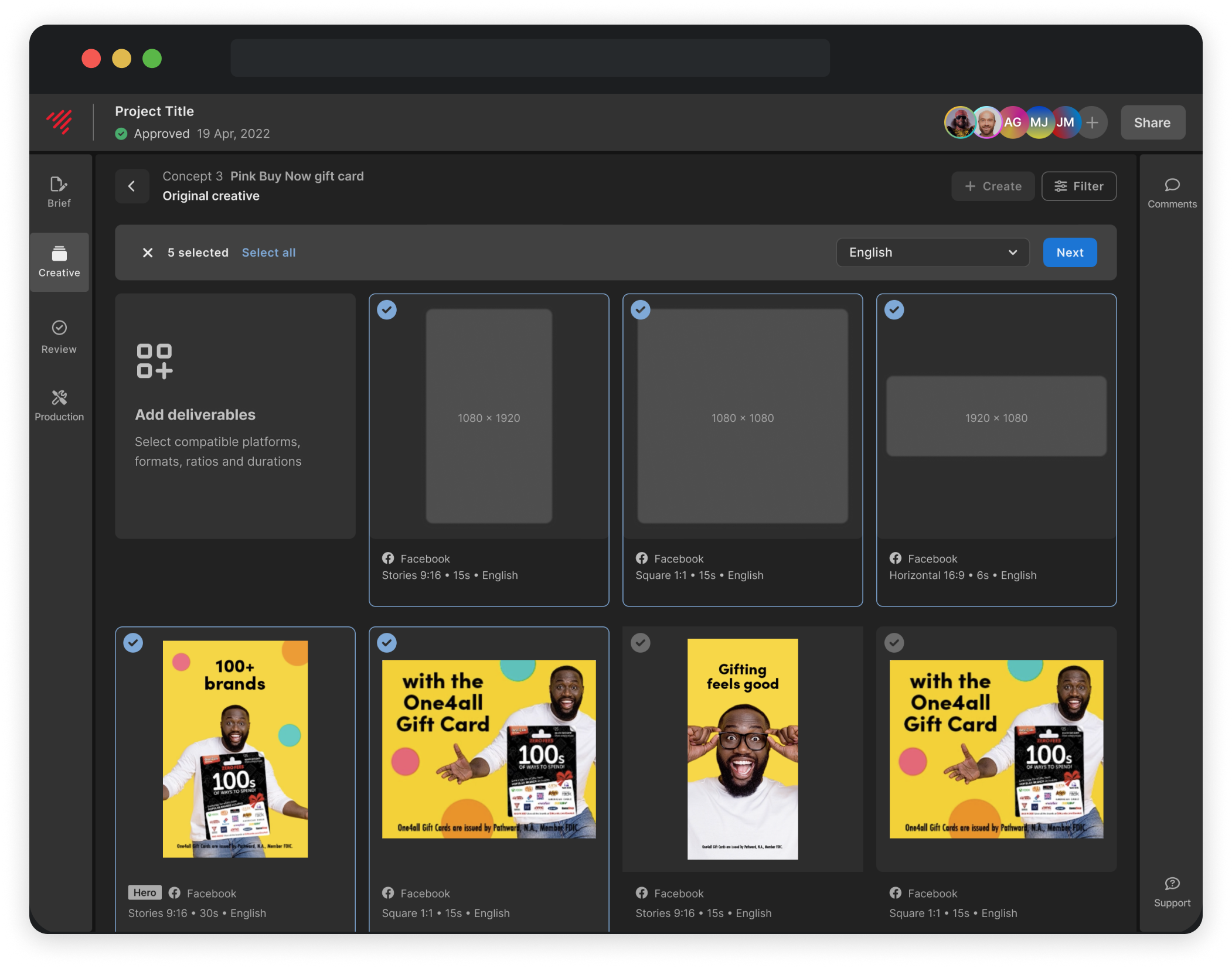 A new flow that lets users scale from approved creative, without starting a new project. Now powering more than 40% of all creative through the platform.