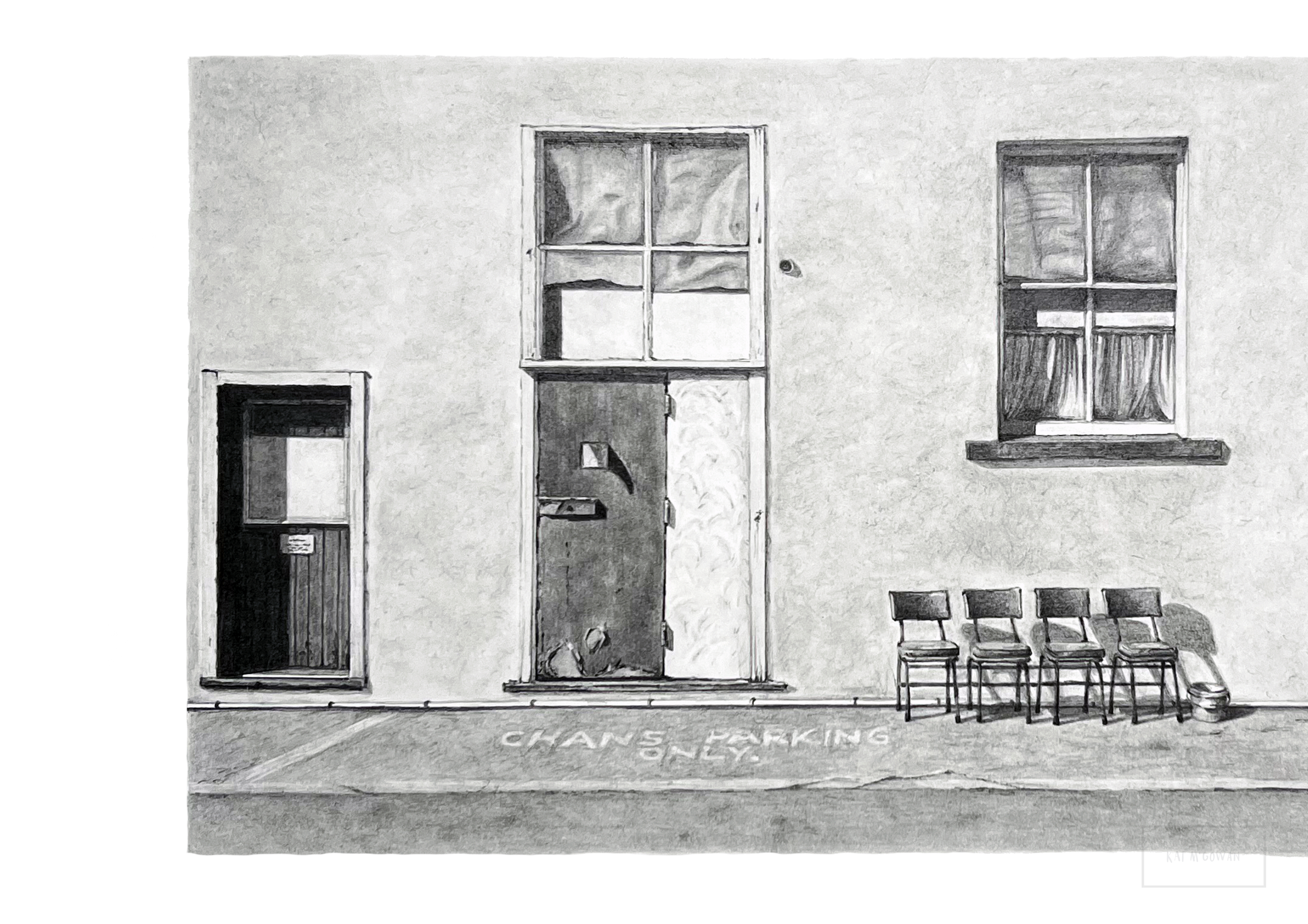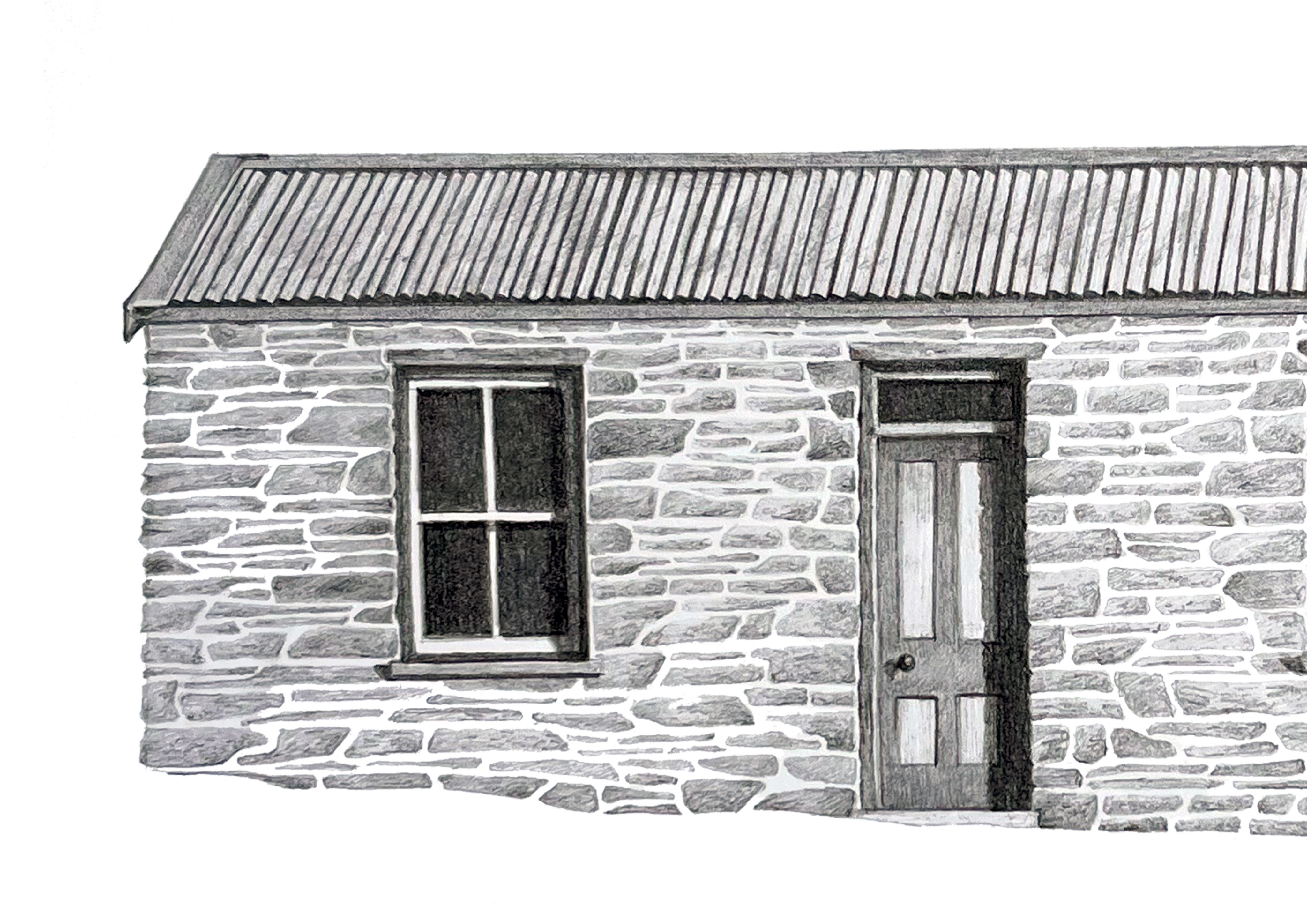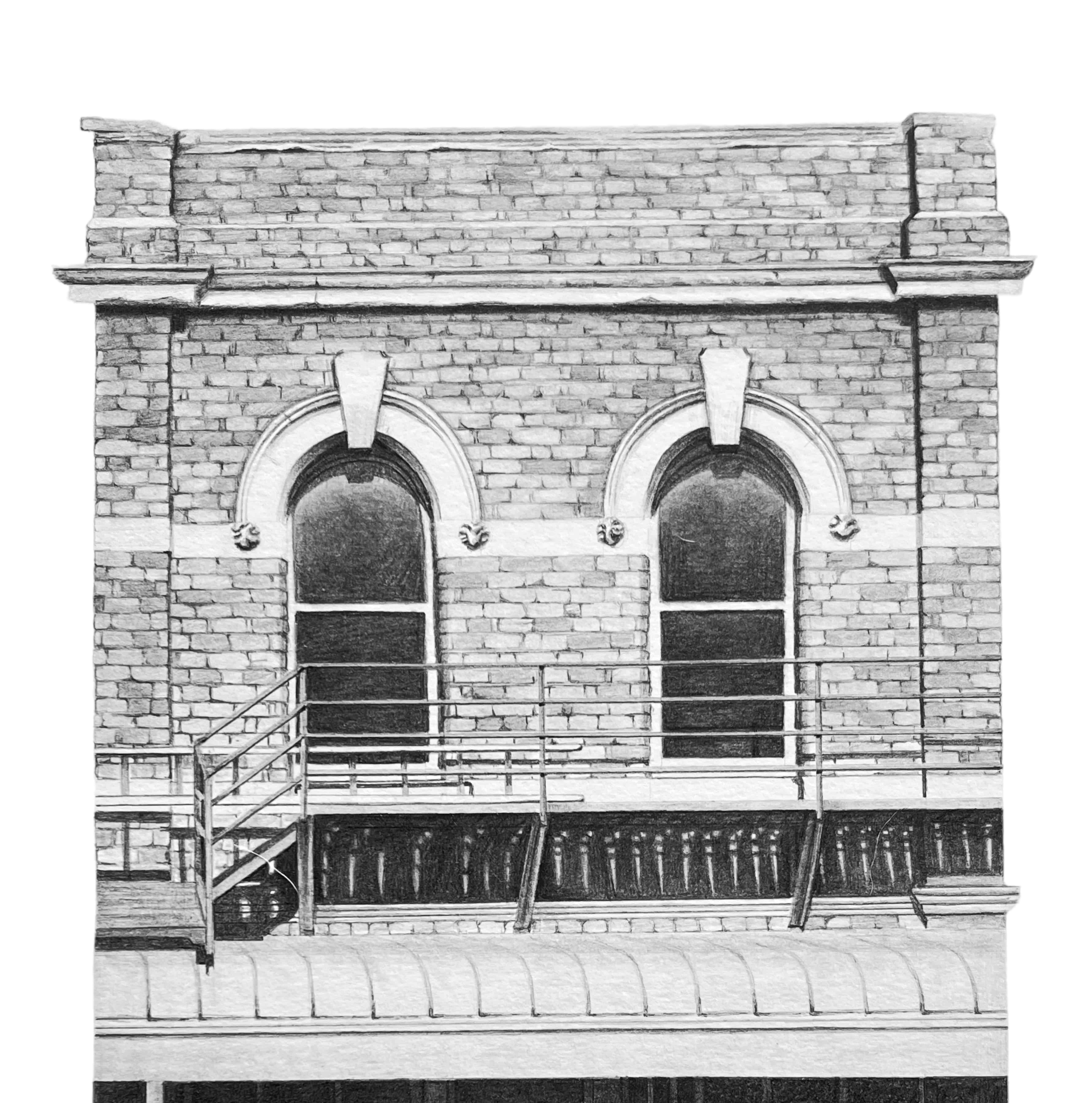 Graphite drawings of historic architecture from Central Otago and structures lost in the 2011 Christchurch earthquake.
