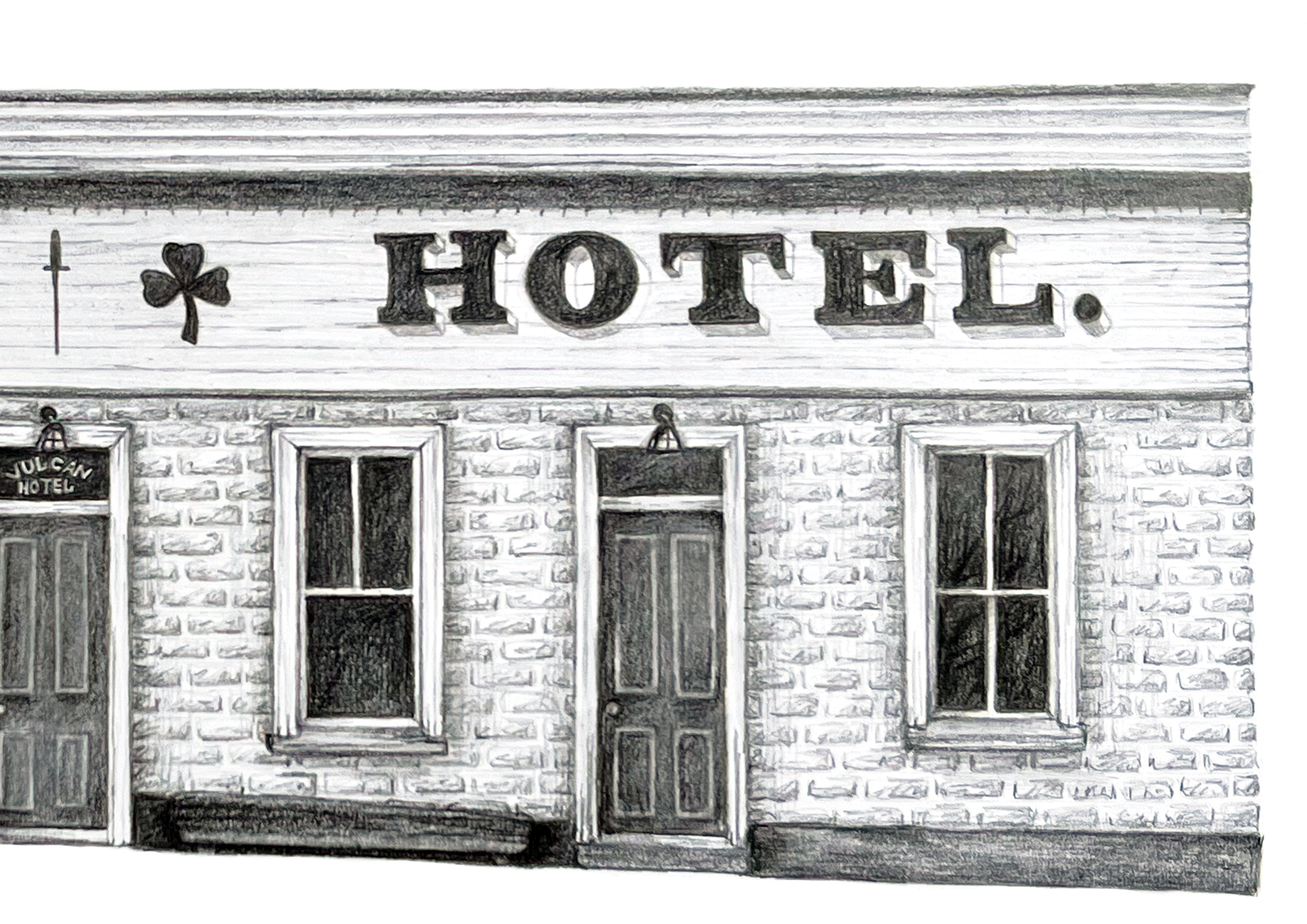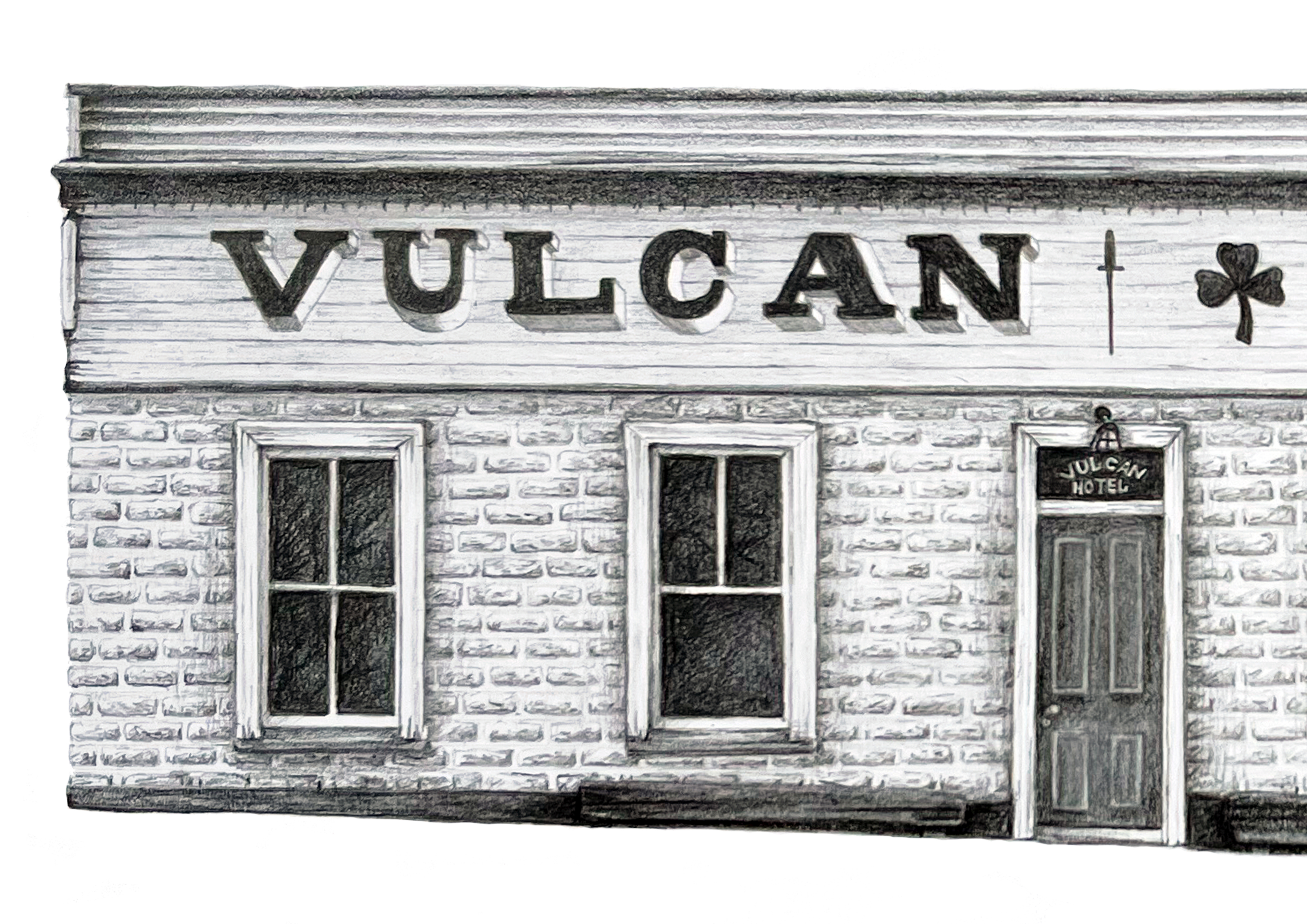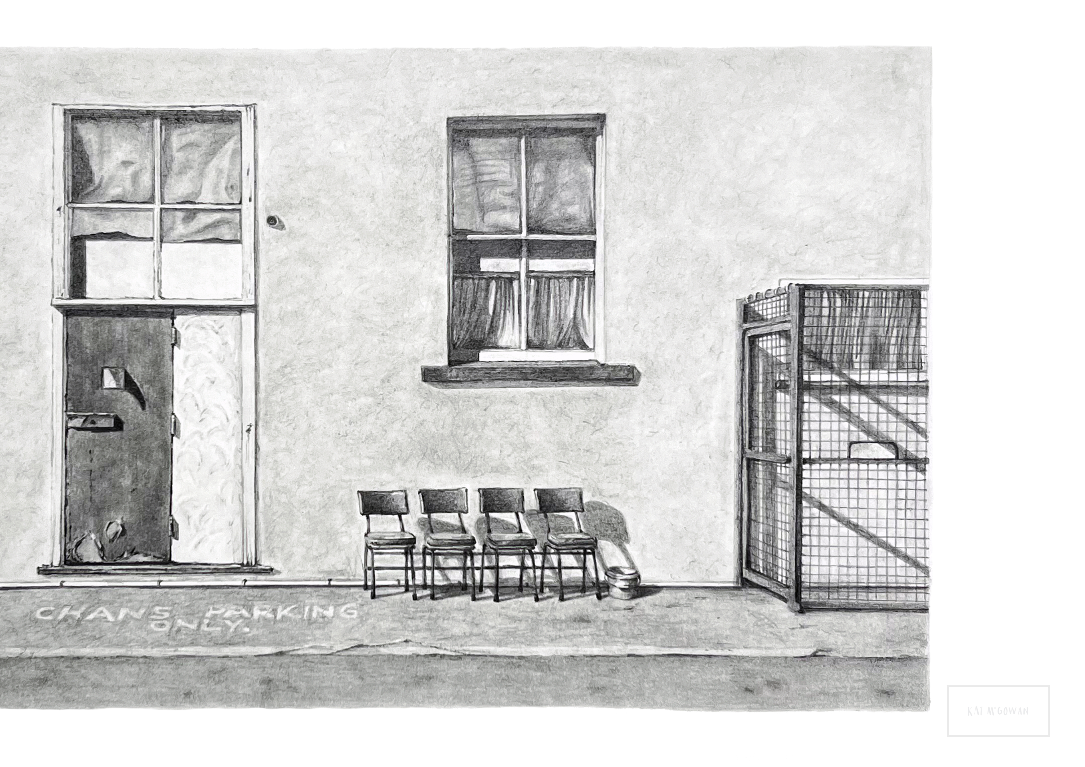 Graphite drawings of historic architecture from Central Otago and structures lost in the 2011 Christchurch earthquake.