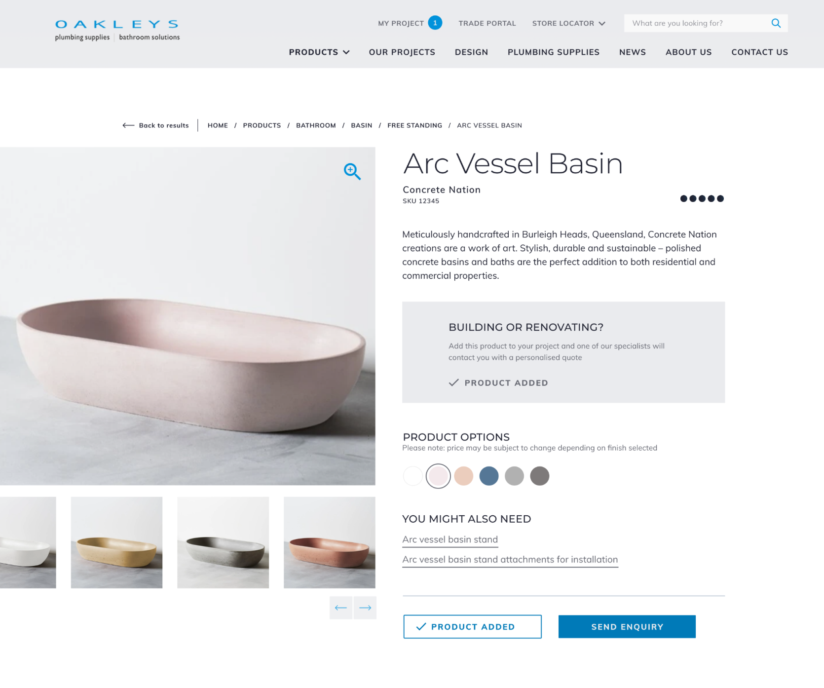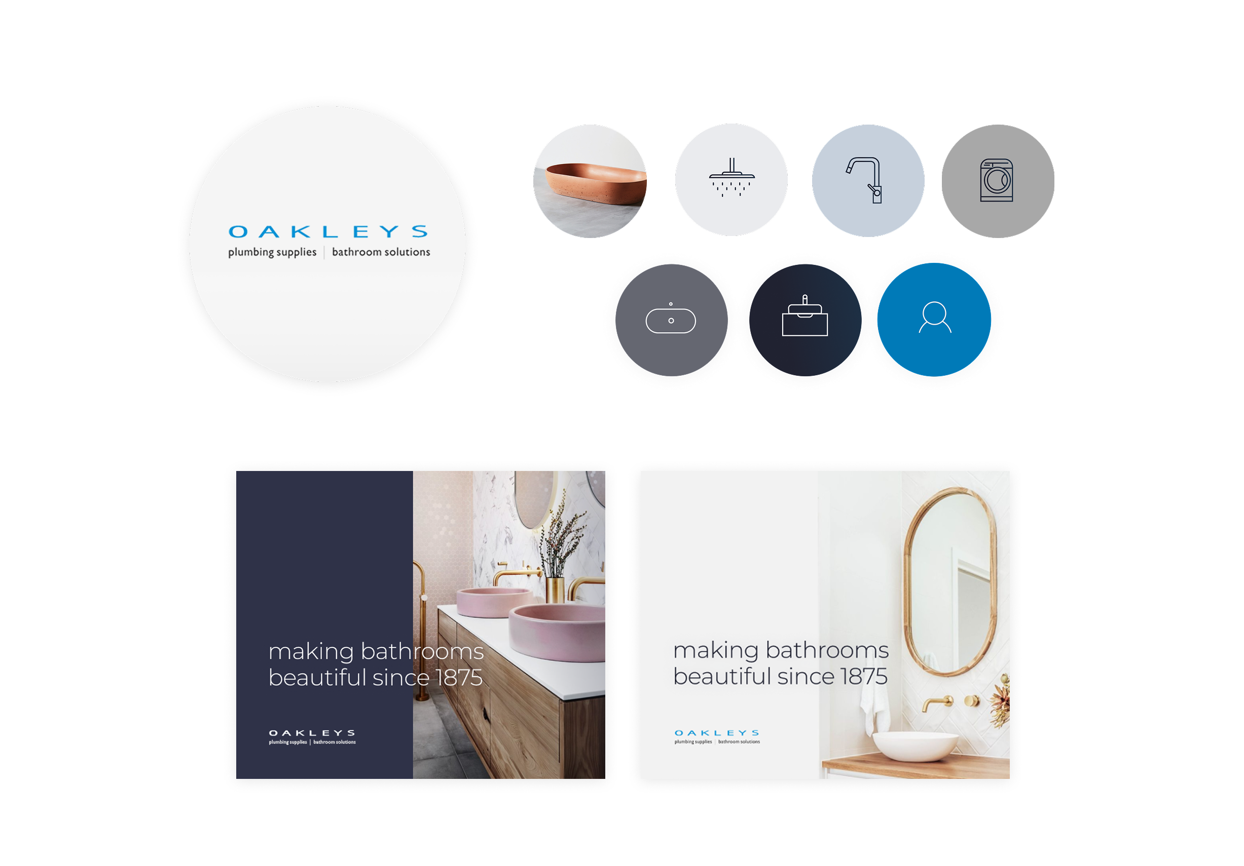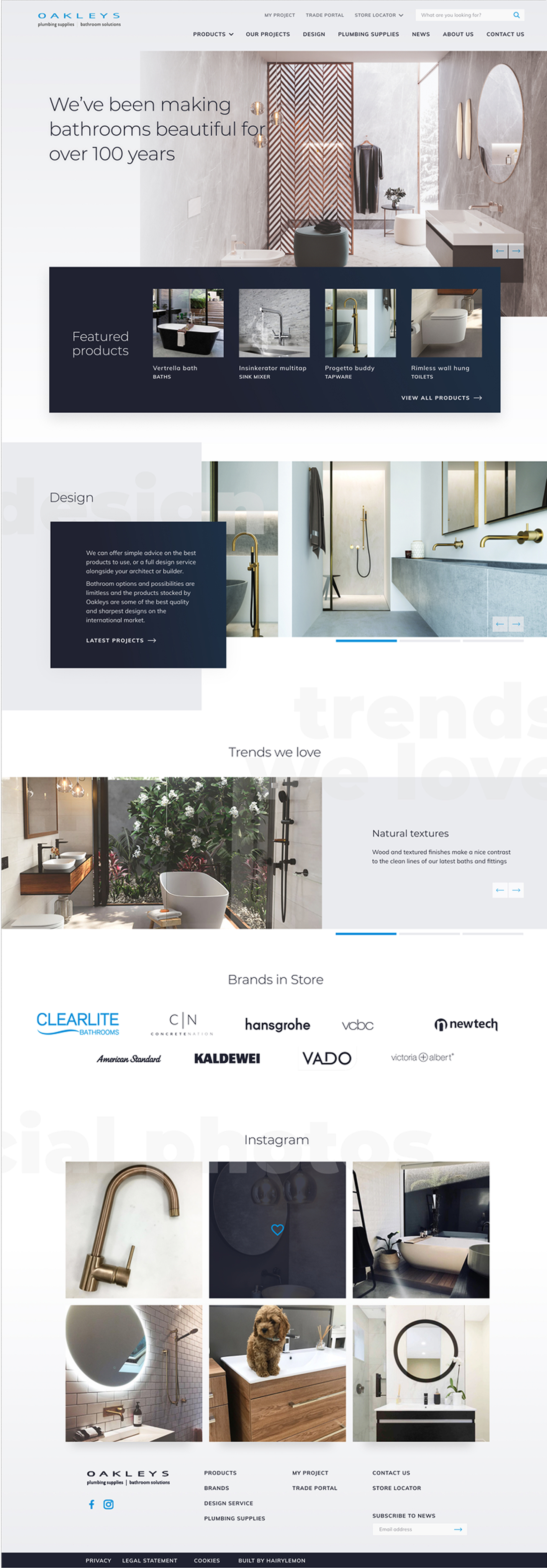After visiting Oakleys’ showrooms, I developed a refreshed colour palette that extended their mid-range blue with a deeper blue-black and muted greys. I presented a design reflective of contemporary home and architecture magazines, and the palette created a clean, modern backdrop that complemented their product photography and elevated the brand’s premium feel online.