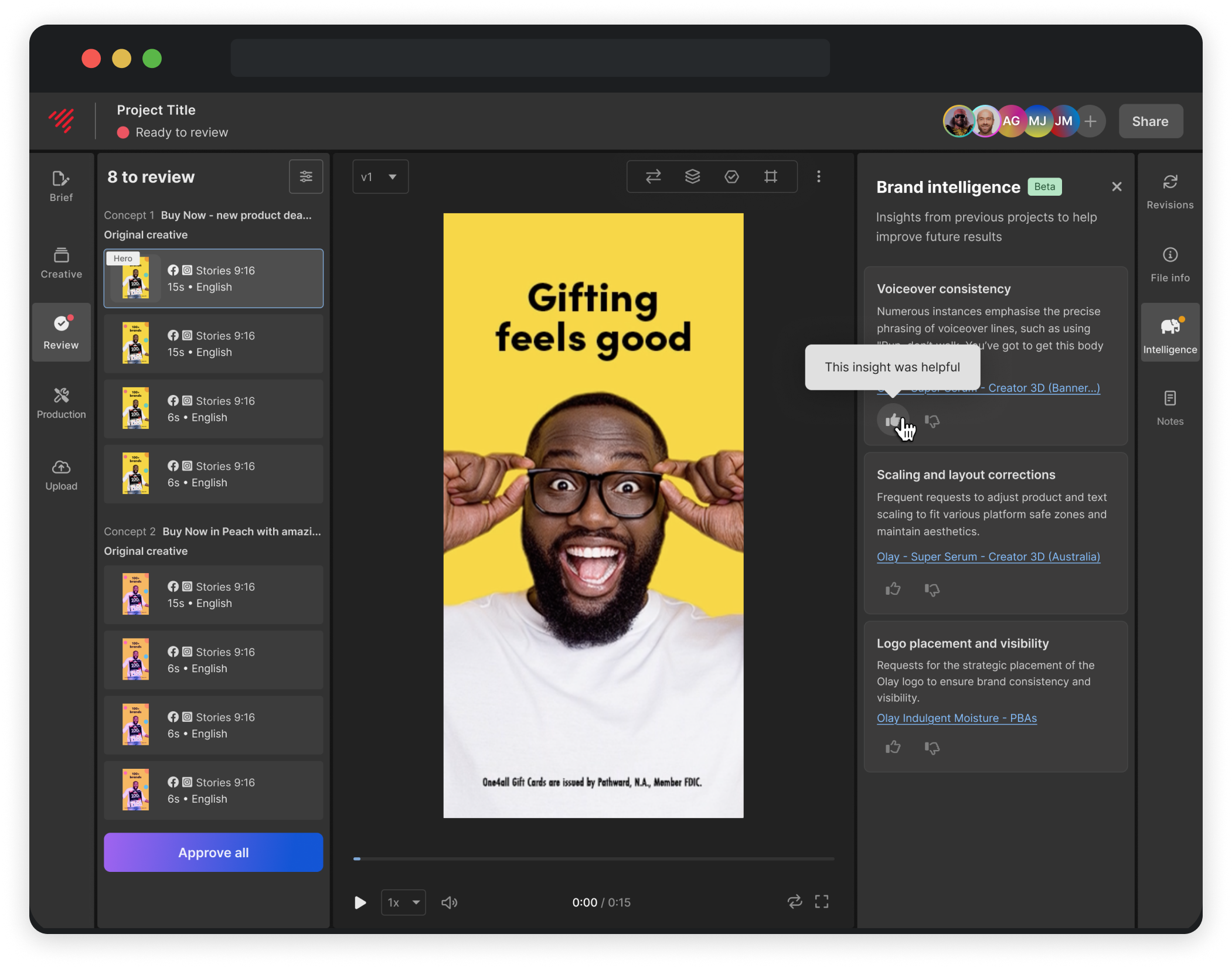 A new flow that lets users scale from approved creative, without starting a new project. Now powering more than 40% of all creative through the platform.